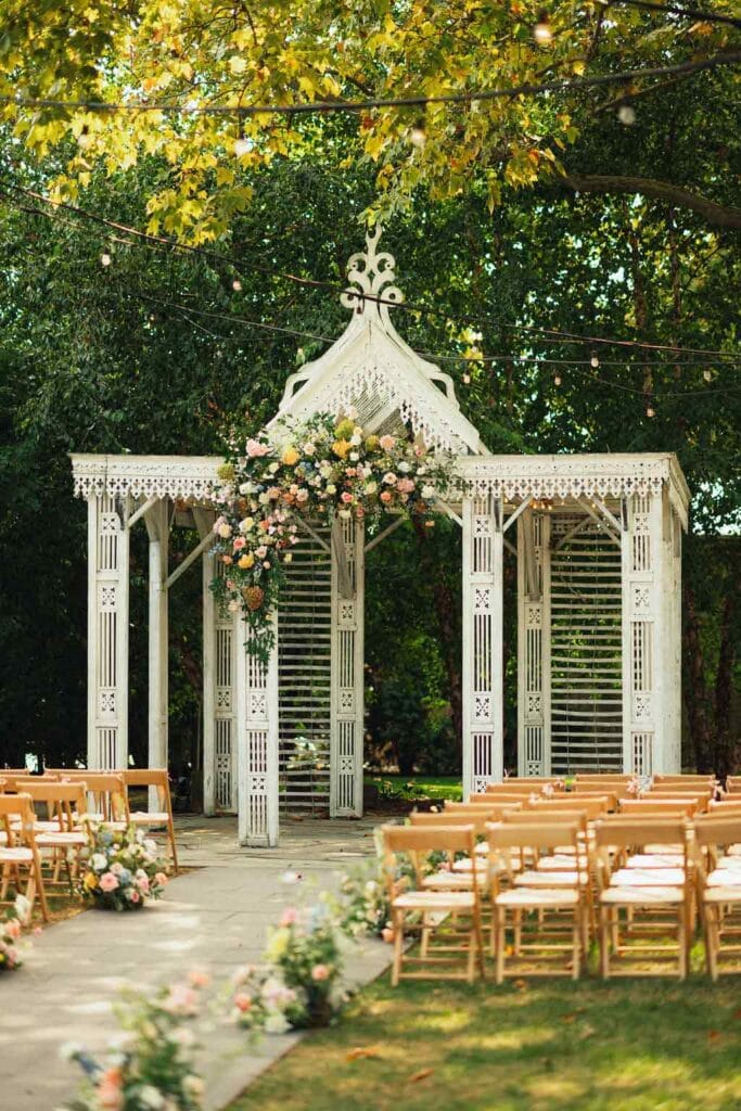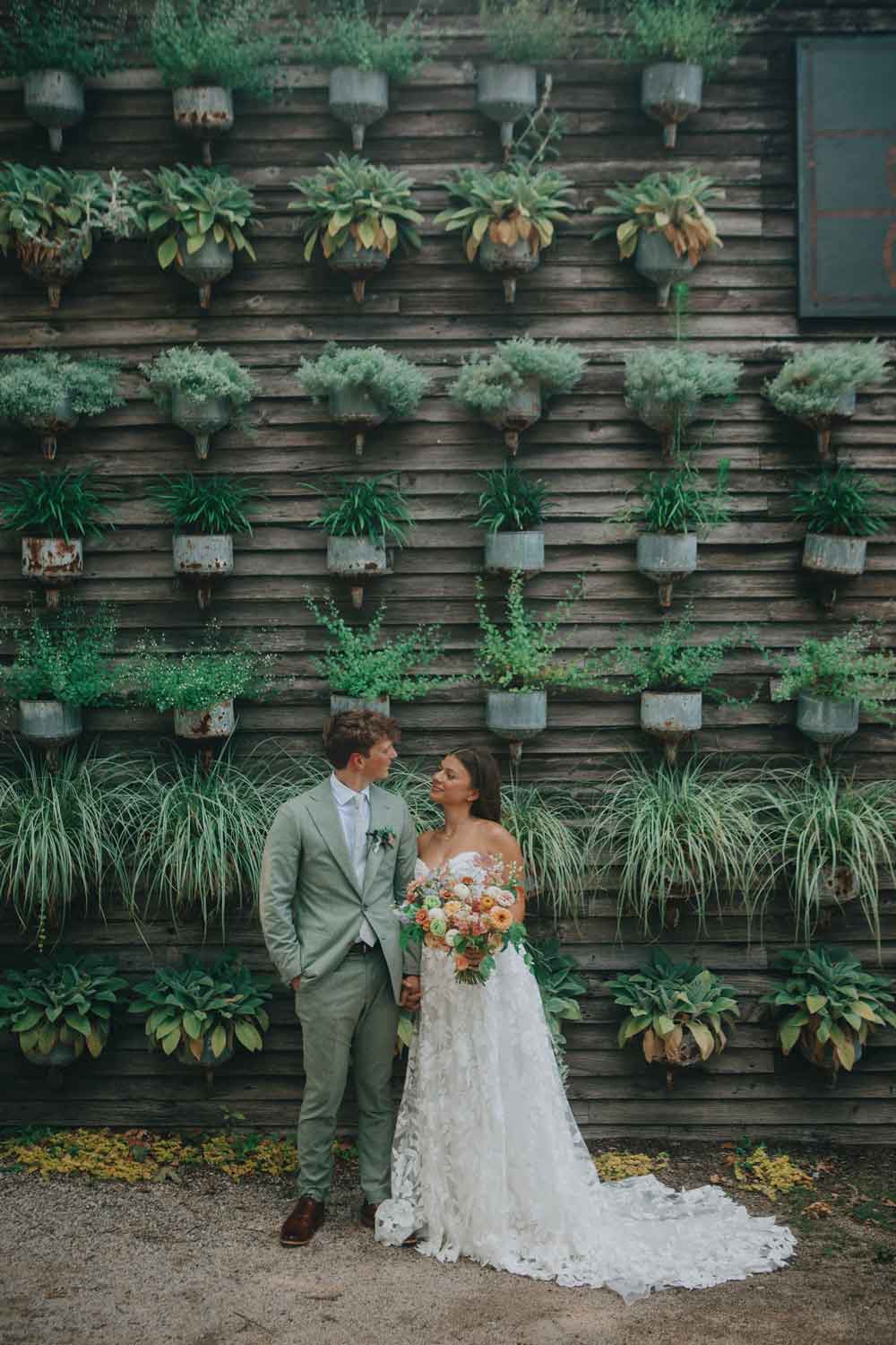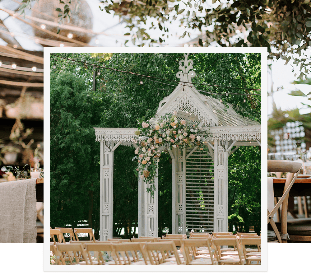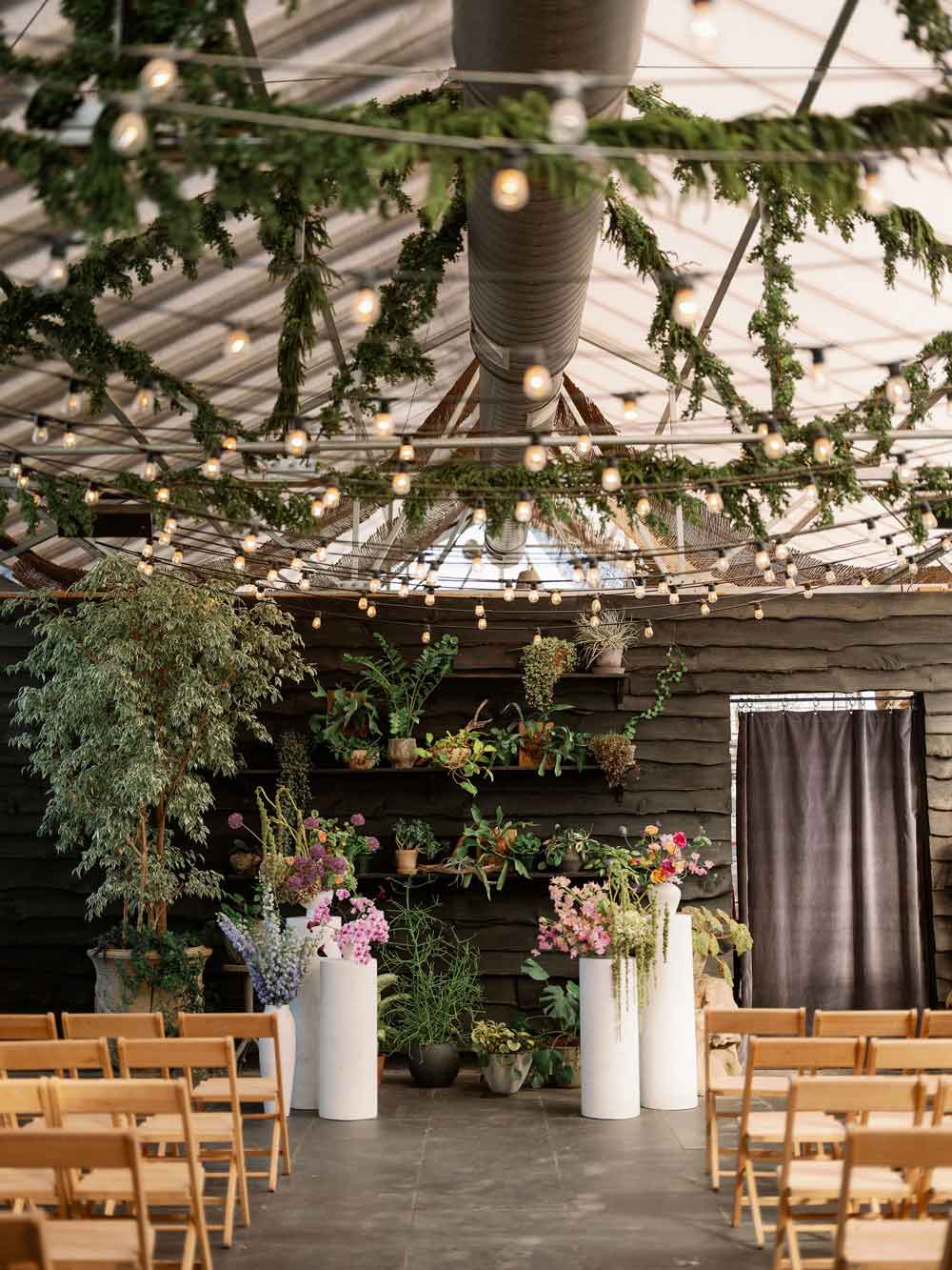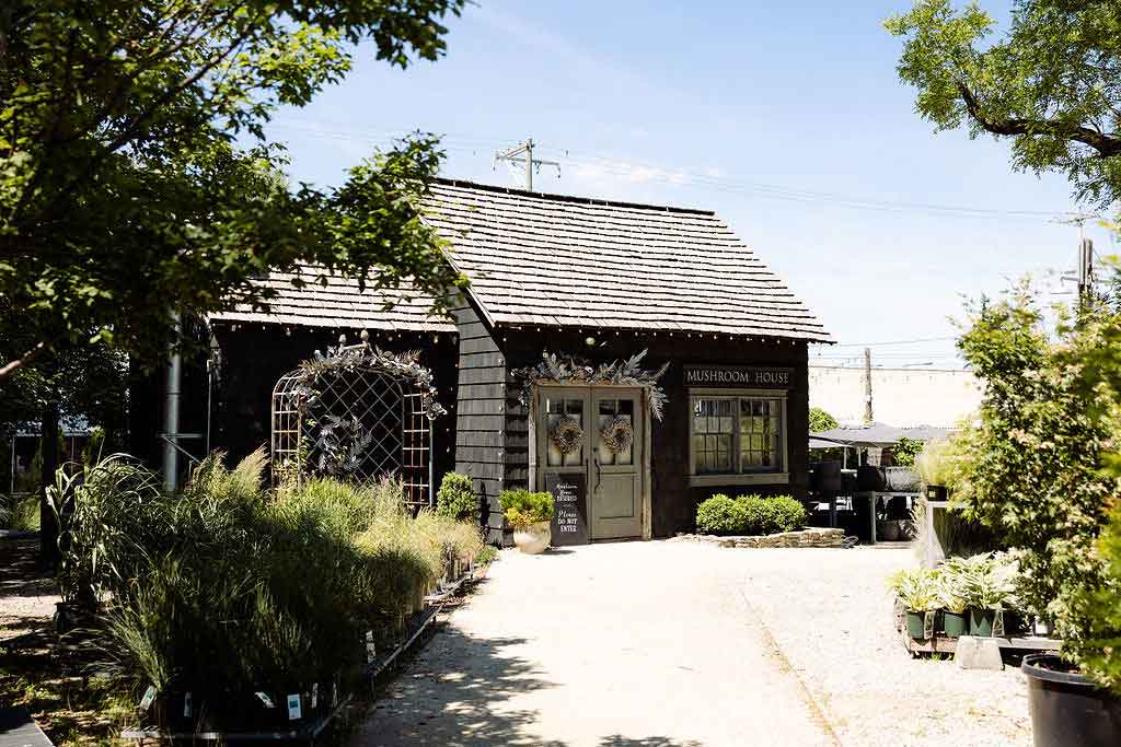 Just a short walk through the nursery grounds, the Ceremony Garden offers a serene, private setting surrounded by open lawns and towering sycamore trees. Say your vows beneath the nearly century-old wooden Wedding Temple, with seating for up to 110 guests. In cooler months, or in case of inclement weather, the refurbished Hot House provides a beautiful indoor alternative, complete with a lush living wall backdrop. Continue the celebration in the Garden Shed—a rustic, inviting space with ample room for dining and dancing.
